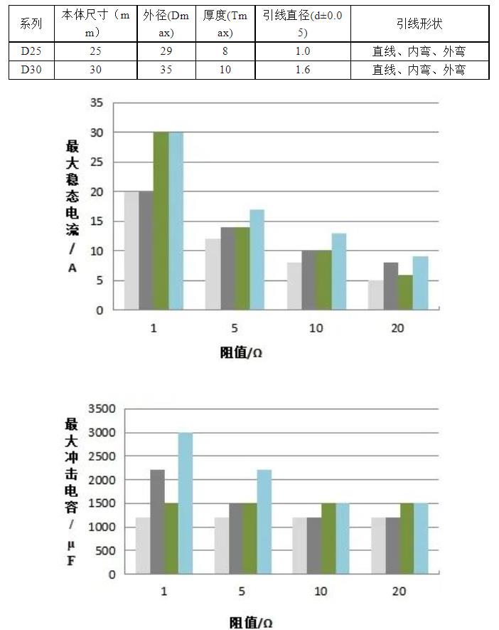 風華高科推出新品高功率D25/D30NTC熱敏電阻系列產品,大幅提升了產品穩態電流能力,具有殘余電阻小,自身功耗低等優點,更適用于大功率開關電源、充電樁等各種高功率設備。該系列產品能在電路接通瞬間抑制浪涌電流的沖擊,有效解決大電流帶來的器件加速劣化問題。目前主要量產型號為1D-25、5D-25、20D-25、1D-30、5D-30以及20D-30。