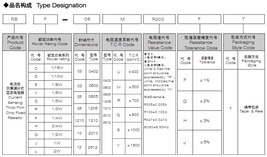 風(fēng)華電流檢測厚膜片式固定電阻器型號命名規(guī)則: