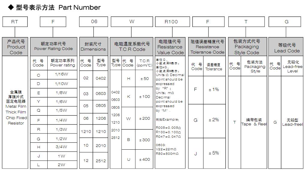 風華高科金屬膜厚膜片式固定電阻器型號命名規則: