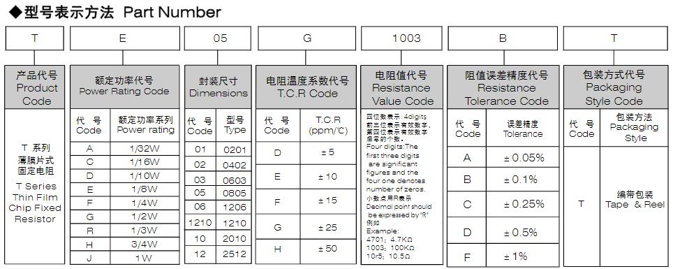 風(fēng)華高科薄膜片式固定電阻器型號命名規(guī)則:
