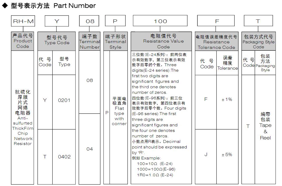風華高科抗硫化厚膜片式網絡電阻器-平面電極型號命名規則: