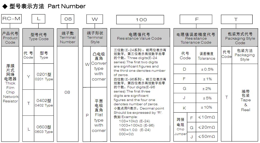風(fēng)華高科厚膜片式網(wǎng)絡(luò)電阻 型號(hào)命名規(guī)則:
