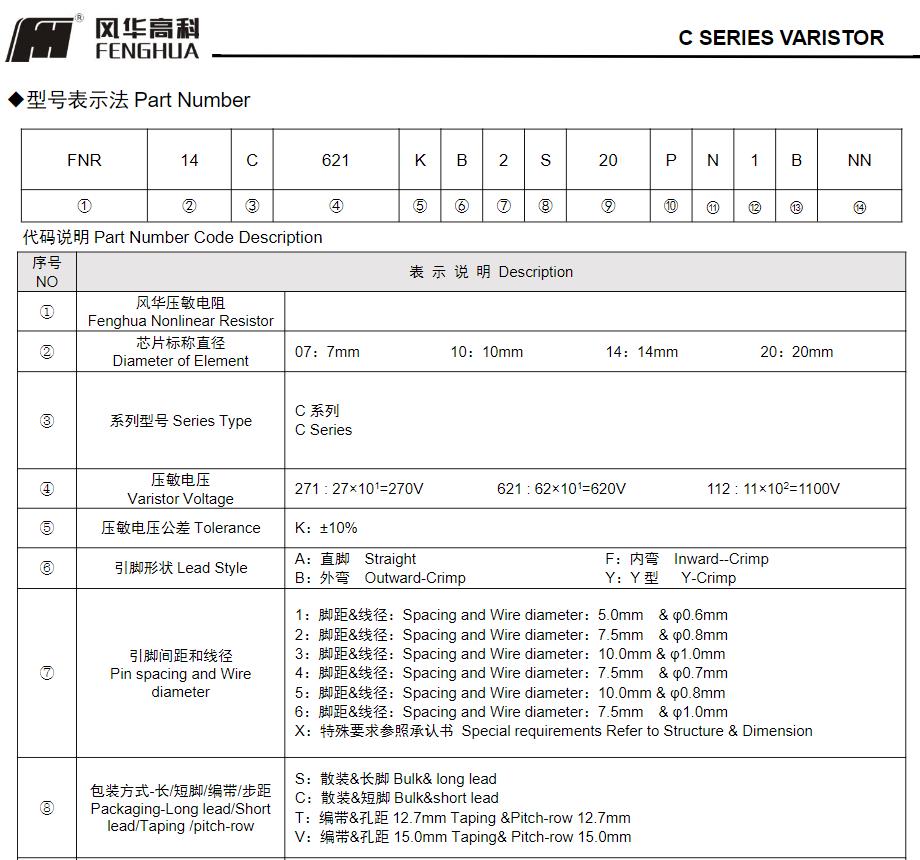 風華高科_壓敏電阻 _C系列壓敏電阻器