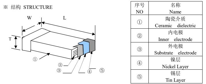 風華電容尺寸與介質對照表: