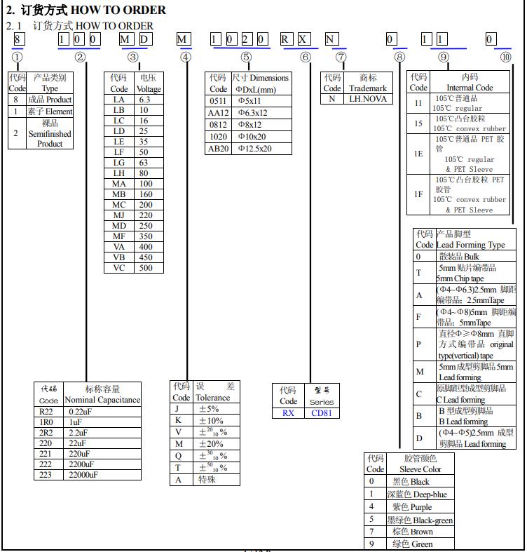 風華高科電解電容命名規(guī)則對照表