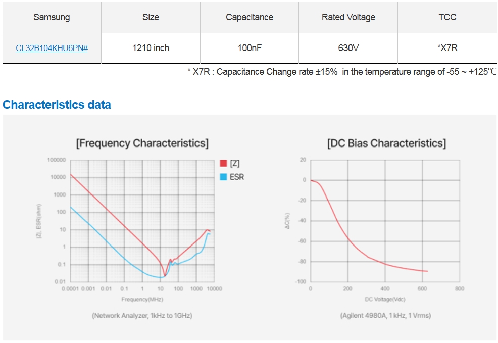 ? 三星電機(jī)正在不斷擴(kuò)大小型,高壓,高容值MLCC的line-up。本產(chǎn)品在1210 inch、X7R、630V line-up中,將容值擴(kuò)大到了100nF, 滿足 xEV (OBC、DC-DC Converter 等) 應(yīng)用的小型化、高效率特性要求。