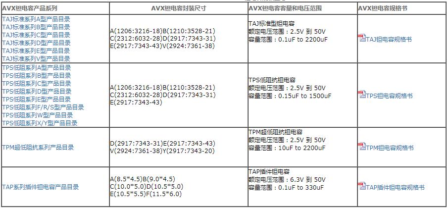 AVX公司生產(chǎn)的鉭電容產(chǎn)品貼片鉭電容和直插鉭電容兩種