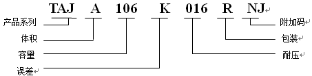 第一部分TAJ:AVX貼片鉭電容的系列號(hào),TAJ系列鉭電容中文俗稱標(biāo)準(zhǔn)品系列,AVX鉭電容共有TAJ,TPS,TPM,TAP,TBC等系列。