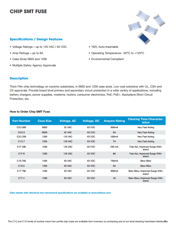 1、磚微型表面貼裝保險絲 2、薄型表面貼裝芯片保險絲 3、薄型SMD可復位器件 4、徑向PTC自恢復設備 5、250/277/350伏徑向保險絲 6、預制600V徑向保險絲 7、微型軸向引線保險絲 8、玻璃和陶瓷保險絲
