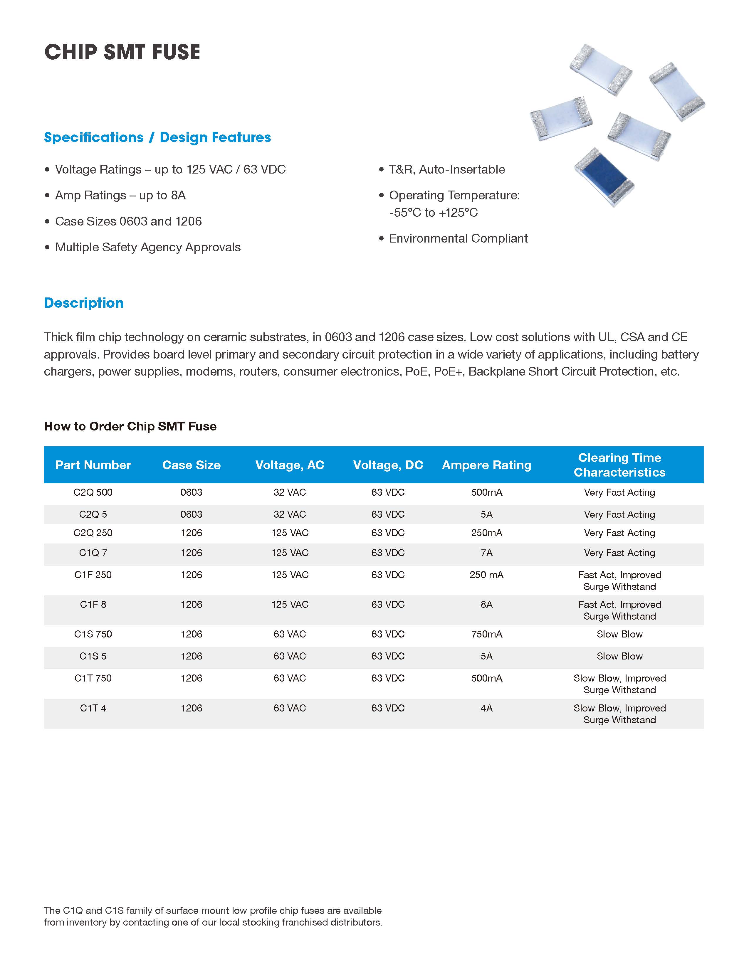 陶瓷基板上厚膜芯片技術(shù),0603和1206個尺寸。 具有UL,CSA和CE的低成本解決方案