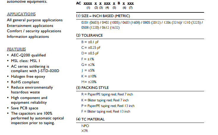 公差:B=±0.1 pF;C=±0.25pF;D=±0.5pF;F=±1%;G=±2%;J=±5%;K=±10%;M=±20%