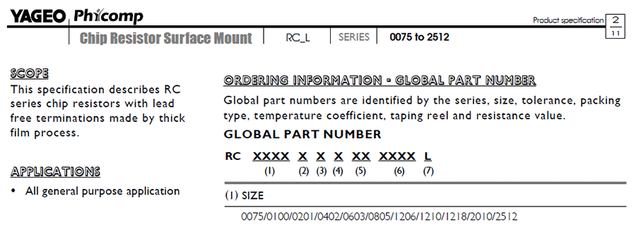 產品封裝:0075/0100/0201/0402/0603/0805/1206/1210/1218/2010/2512