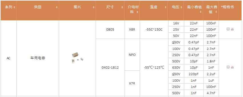 AC車(chē)用電容符合AEC-Q200標(biāo)準(zhǔn),PPAP檔IOS / TS16949認(rèn)證電路板彎曲≧2mm100%自動(dòng)光學(xué)檢查(AOI)高可靠性