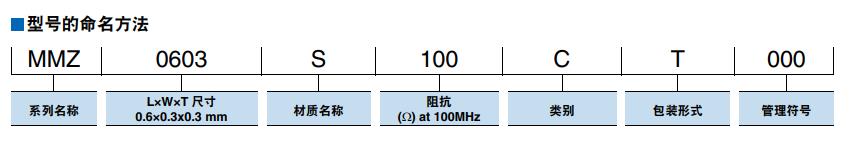 TDK貼片磁珠命名規則:TDK磁珠型號MMZ0603S100CT000MMZ表示系列0603表示尺寸S表示材質名稱100表示阻抗C表示類別T表示包裝方式000表示管理符合