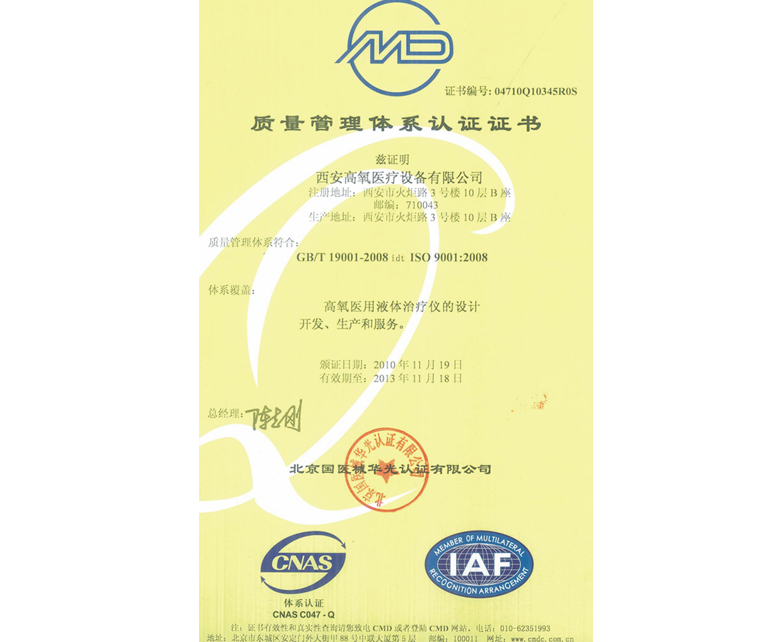 醫(yī)療器械質(zhì)量管理體系認(rèn)證證書